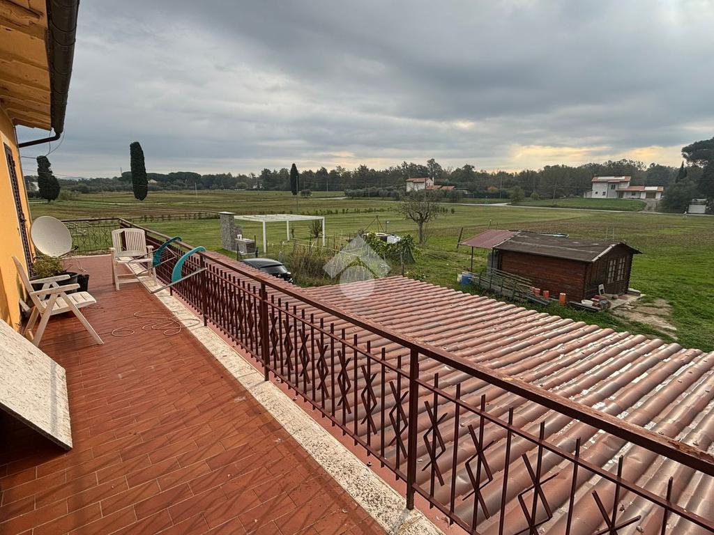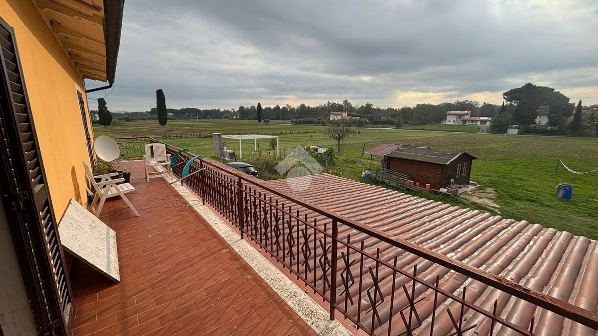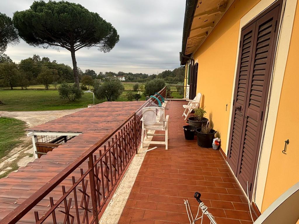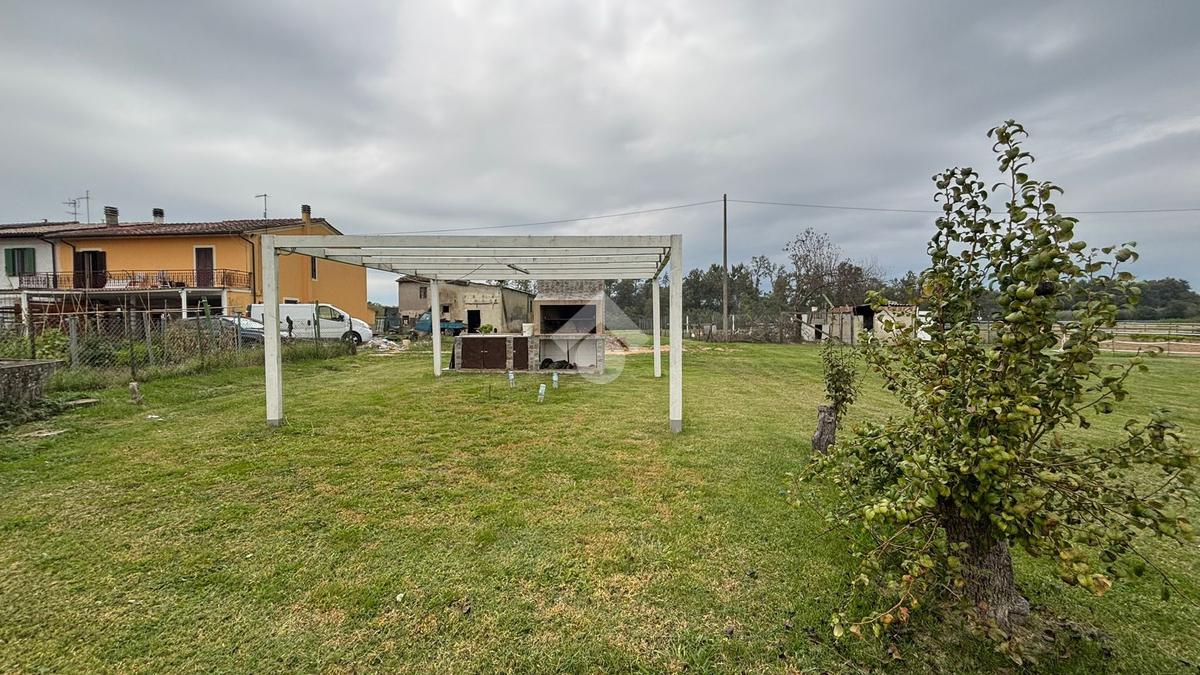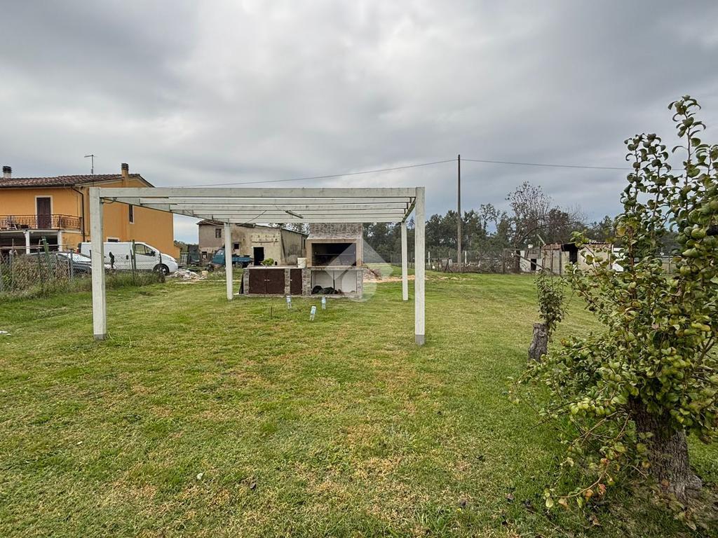 Completano l'immobile un portico all'entrata della casa e un terreno attaccato all'abitazione di circa un ettaro, attualmente una parte adibita ad orto e a pollaio e un annesso agricolo presente sul terreno.