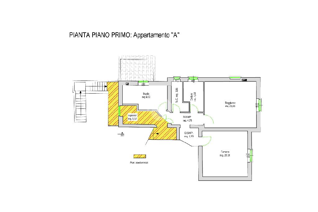 In zona tranquilla immersa nel verde, si propone appartamento posto al piano primo di circa 94 mq di quattro vani.
