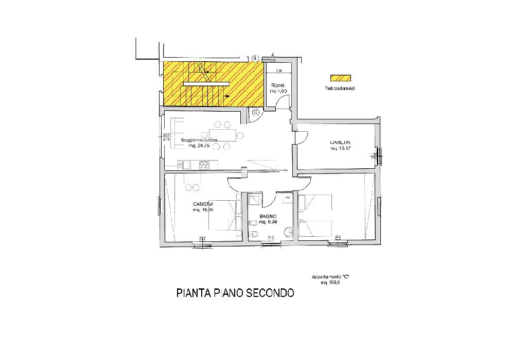In zona tranquilla immersa nel verde, si propone appartamento posto al piano secondo di circa 109 mq di cinque vani.